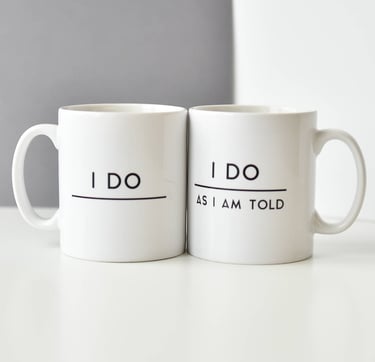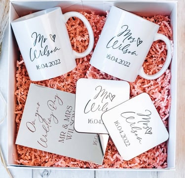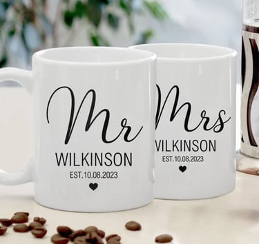 No one else will use your mug but you with your own name. Mr & Mrs, Mr and Mr, Mrs & Mrs... Wording can be changed just for you! £12.50 a set